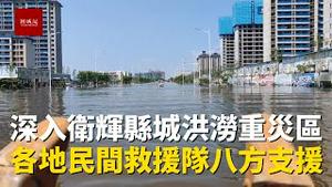 深入最严重灾区新乡卫辉县洪涝灾害现场,放眼望去一片汪洋,全国各地民间团队八方支援