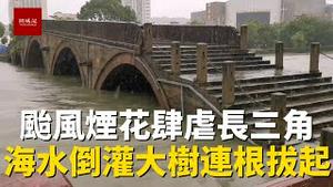 台风烟花登陆长三角,海水倒灌河水暴涨,街道被淹大树连根拔起,小心出行注意安全