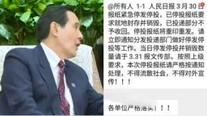 人民日报出大事?3月30日报纸紧急销毁。马英九完蛋了!他在中国闯了大祸。习近平不再会见他?王沪宁搞统战失败